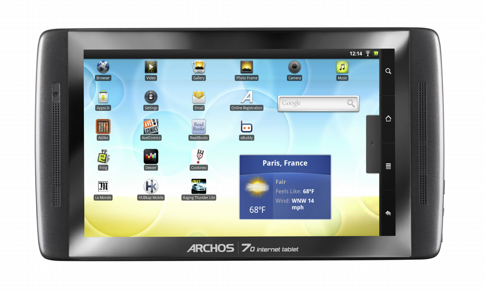 Basically, this is what you see on your product screen, but ten times bigger. With its TV output, the ARCHOS 70 internet tablet displays every Android™ sceen on your wide screen TV. You can then browse your files or the Internet from your couch. And guess how immersed in your 3D games you could be using the device as a steering-wheel! This is just staggering!