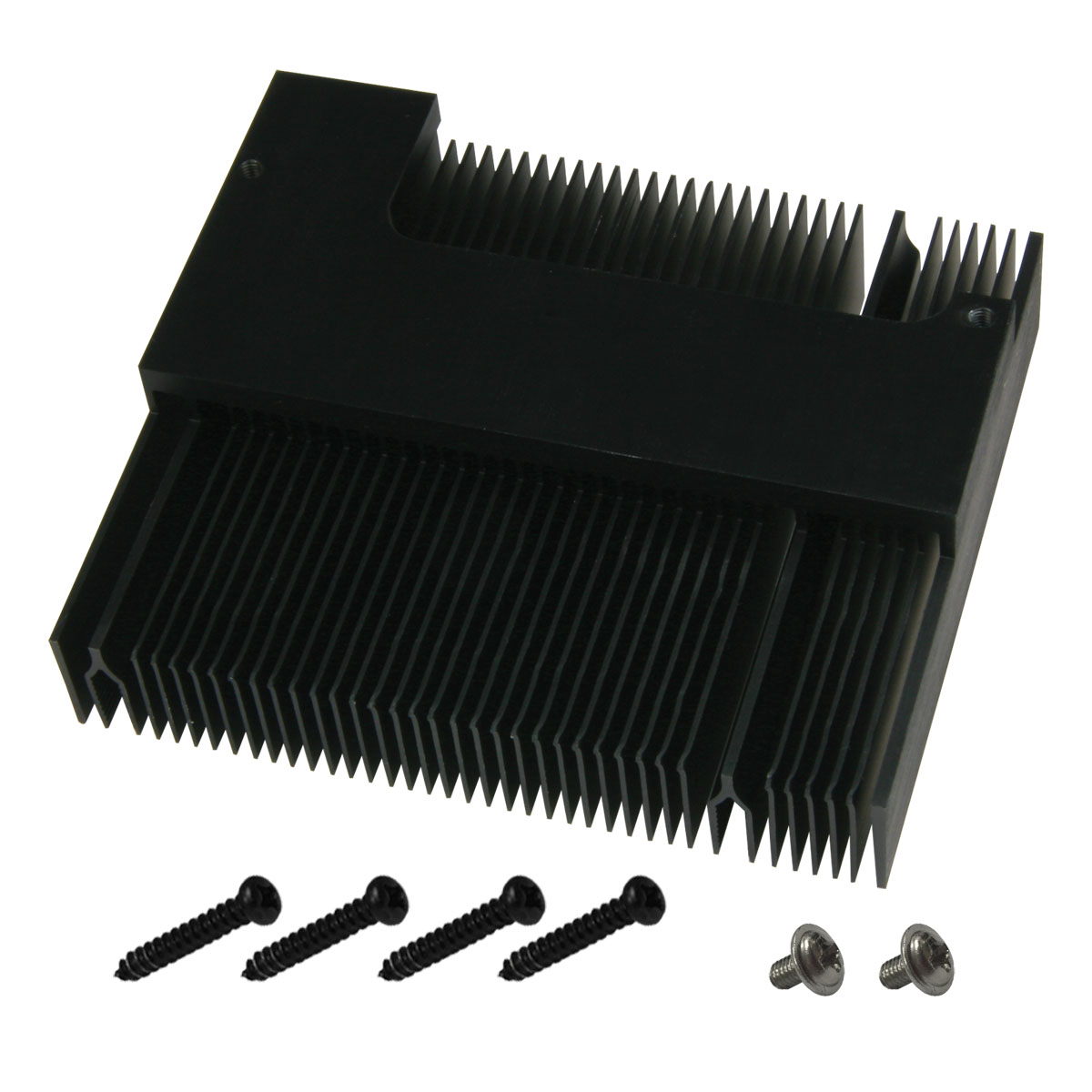 The large heatsink cools the PCB in the RAM area and thus also the RAMs itself which are soldered onto the PCB.