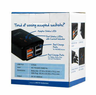 With the Home Charger 4500 you can fast charge four of your USB devices at the same time. With four ports, all up to 2,900mA (combined 4,500mA), and the support of USB 3.1 your devices are fit for service in a blink.