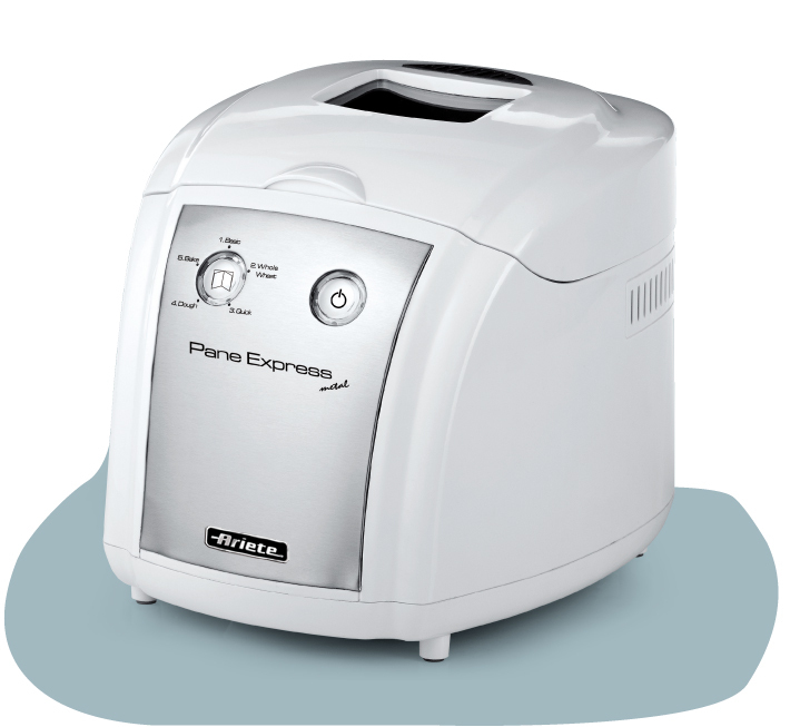 The new small and compact Pane Express Metal bread maker is ideal for loaves from 350 g up to 500 g. Just enter the required programme, put in the ingredients and Pane Express will do the rest, mixing, proving and baking. Also ideal for use with gluten-free flour and for making excellent jams and preserves.