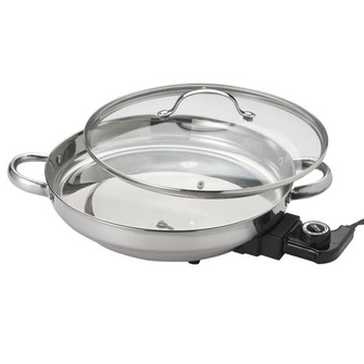 Enjoy the perfect combination of classic cookware and electric convenience with the Aroma Gourmet Series Stainless Steel Electric Skillet. Stir fry, simmer, pan fry, griddle, brown, braise and so much more! Serve up daily dinners or wow a crowd with this multi-tasking pan that makes cooking and entertaining easier than ever.