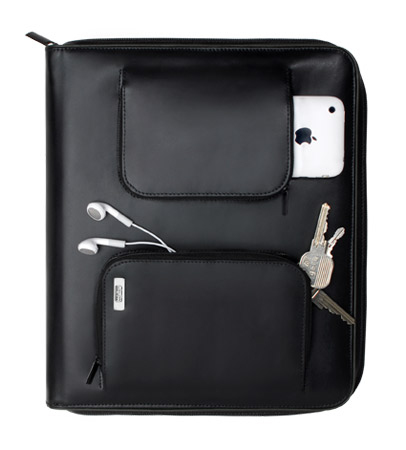 Functionally, the bag offers plenty of storage options for accessories and the personal documents you just can’t live without. There are two large and easy to access storage compartments for coins, phone, keys, and headphones on the front of the bag. On the back there is a pocket for an A5 pad and other documents. There are specially designed pockets on the inside of the bag for business and credit cards. There is another compartment for pens, extra papers, and a passport or plane tickets. The iPad has plenty of room inside and is well protected from impact.