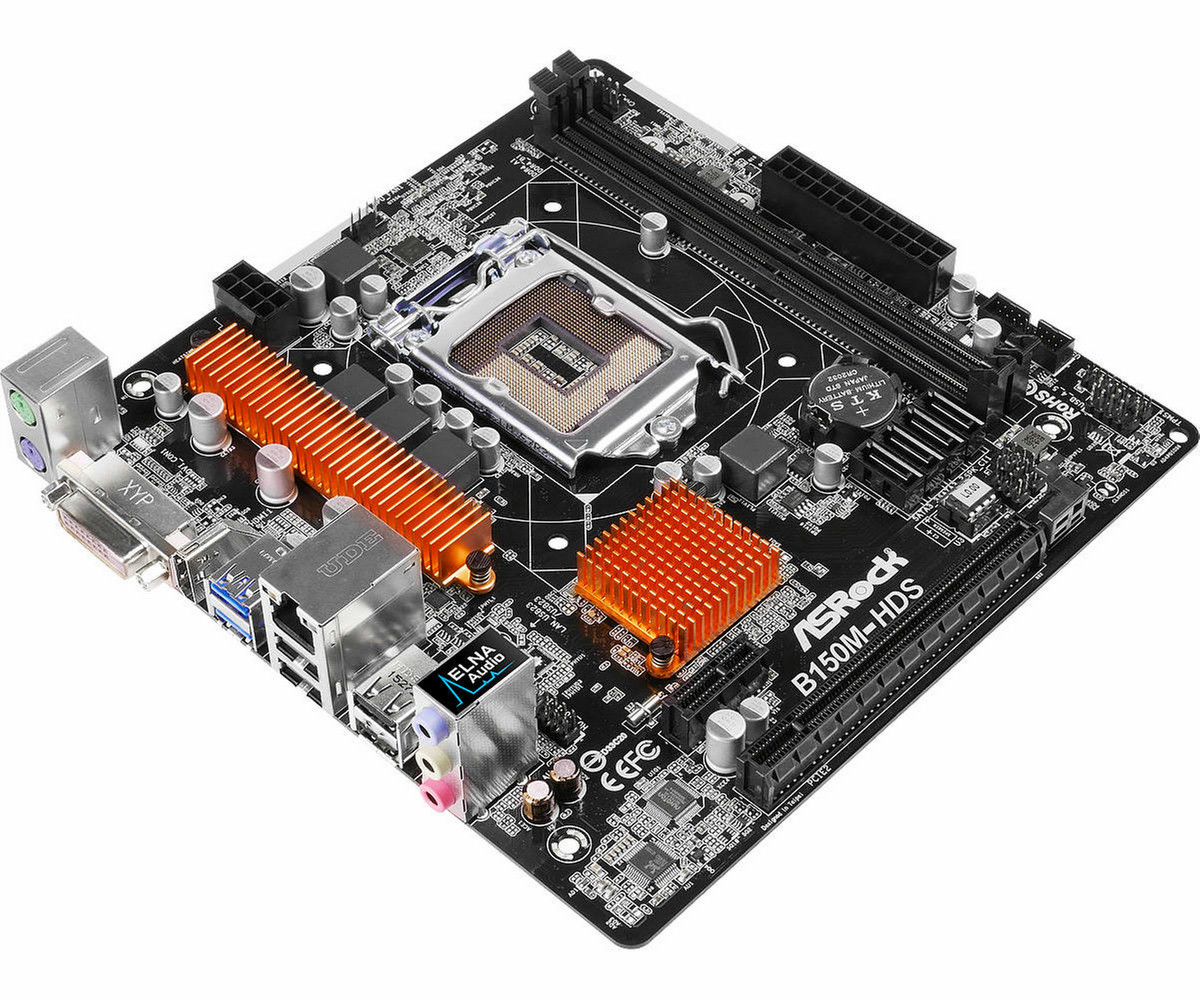 B150M-HDS, Intel B150, Supports 6th Generation Intel Core i7/i5/i3/Pentium/Celeron Processors (Socket 1151), 2 x DDR4 2133, Supports Intel HD Graphics, 4 x SATA3 6.0 Gb/s, Micro ATX