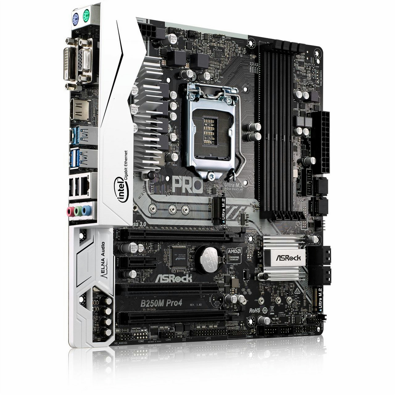 Intel B250, Socket 1151, Intel Core i7/i5/i3/Pentium/Celeron, 4x DDR4 DIMM 64GB, 128MB AMI UEFI, 7.1 HD Audio, AMD Quad CrossFireX, 2x PCI Express 3.0 x16, 6x SATA3, Gigabit Ethernet, 2x PS/2, D-Sub, DVI-D, HDMI, SPDIF, 4x USB 3.0 Type-A/C, 2x USB 2.0, Micro ATX