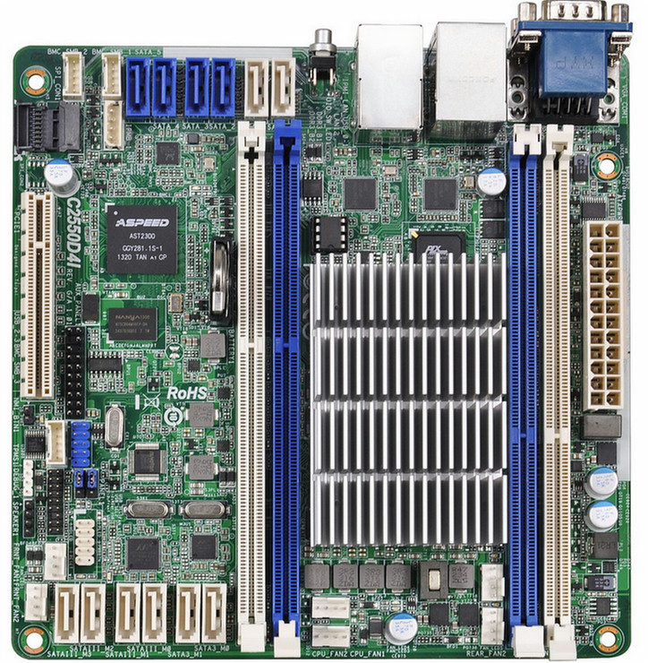 Intel Avoton C2550 Quad-Core, DDR3 1600/1333, 8 x SATA3 6.0Gbps, 4 x SATA2 3.0, Dual Intel i210, 3 x USB 2.0, 1 x PCI-E x8