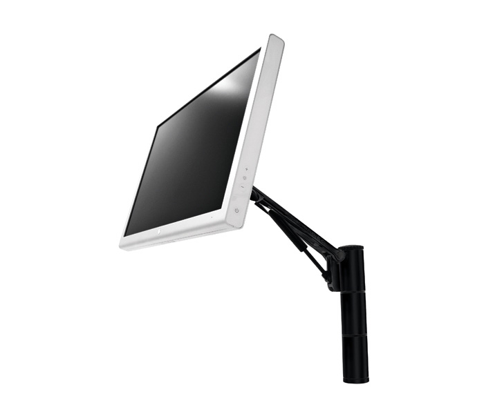 The SD-SA-DK offers the ultimate in desktop versatility. With two separate pivot/adjustment points, the user has excellent control over their monitor position in terms of height, swing,, tilt and screen rotation. Height adjustment is effortless due to the monitor weight counter balancing gas strut mechanism which glides the monitor into position. Screen tilt and pan of up to 40° is also made simple with a ball joint integrated into the arm to position the screen for the optimum viewing angle. Combined, these features ensure that all adjustments can be made from a seated position. Ease of use clearly drives this mount making it an obvious choice for ergonomic excellence and user productivity.
