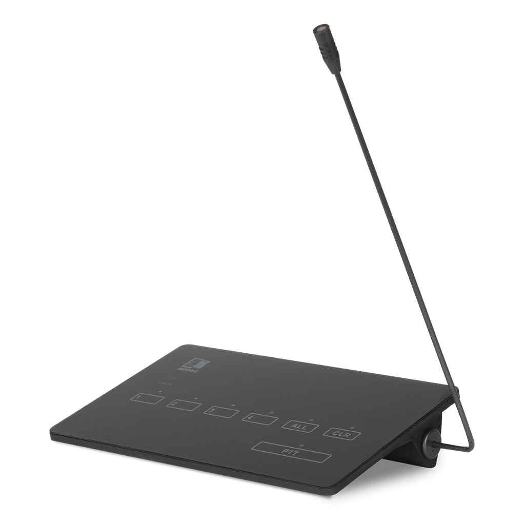 - Both zone selection and data bus indicators are implemented, giving an overview of the systems current operation mode and data bus occupation. Quick operation is made possible using the ‘select’ & ‘clear all’ buttons, while the ‘push-to-talk’ (PTT) button must be pressed during announcements.