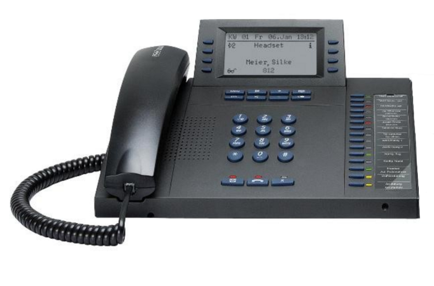 The telephone's modular concept lets you add up to three COMfortel Xtension30 modules for extra function keys*. You can fit them on either side of your telephone. With all modules fitted, you have 105 function keys available. Each key has 2 levels offering a total of 210 functions available upon key stroke.