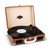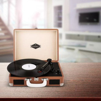 It might seem at first glance like a beautiful retro suitcase from the 50s, but this is the new Auna brand portable record player Peggy Sue. She not only plays up to 3 different record sizes, but also offers you the opportunity record all those personal favorites in a compact digital format.
