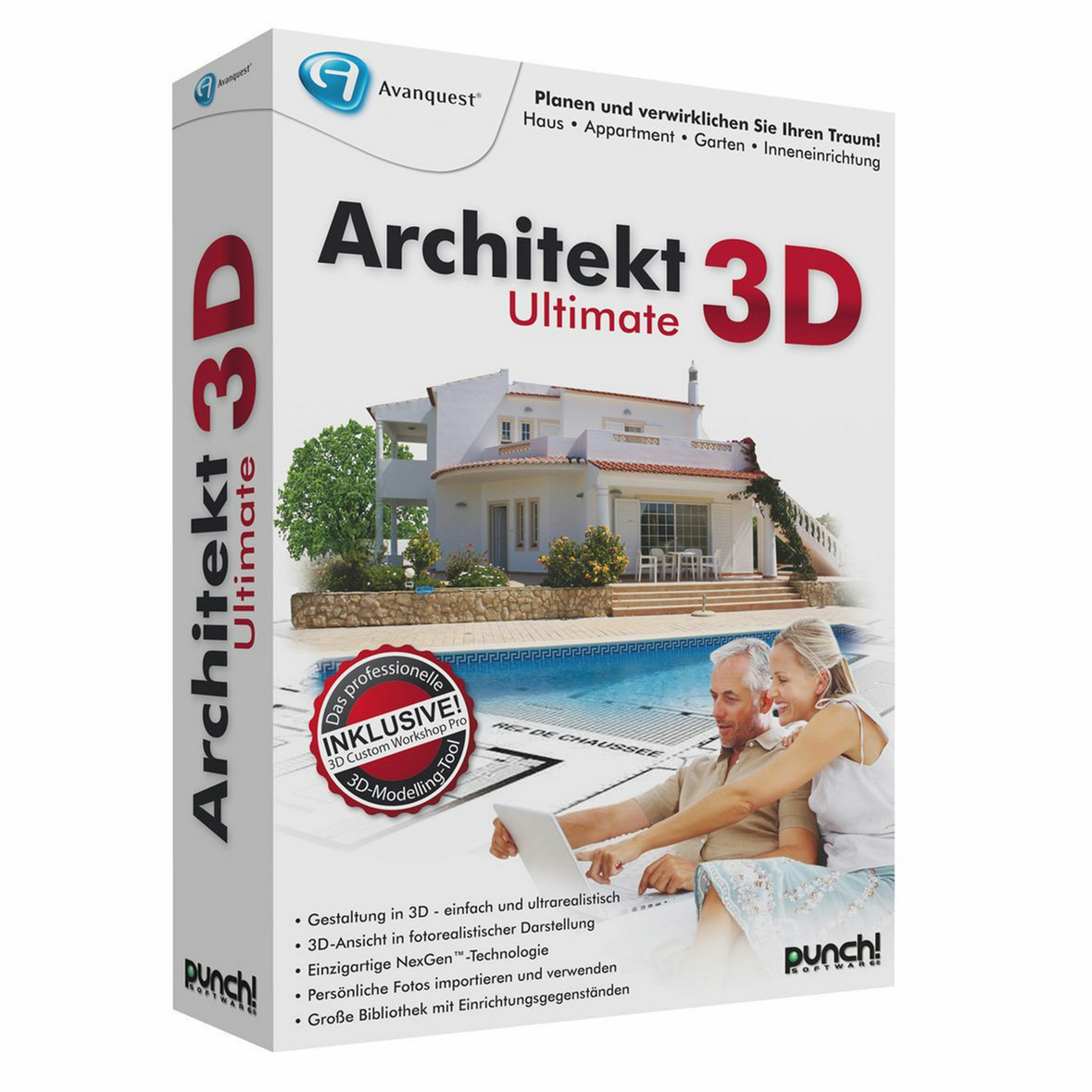 Avanquest Architekt 3D Ultimate. Language version: German. Platform: PC, Minimum processor: 1GHz Pentium, Minimum system requirements: DVD-ROM. Software type: Box