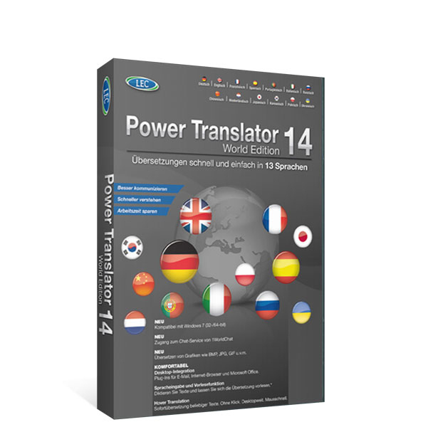 Avanquest Power Translator 14 World Edition, 2-5u, UPG. Language version: Multilingual. Minimum processor: 1.0GHz, Platform: PC, Compatible operating systems: Windows 2000/XP/Vista/7. License quantity: 2 - 5