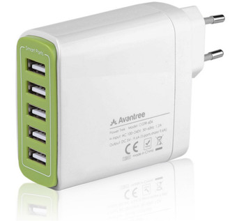 Avantree PowerTrek, a smart travel USB charger, is a perfect solution for charging multiple devices during travel , at home or in the office. It provides a 48W / 9.6A output and 5 smart USB charging sockets that allow you to quickly charge 5 devices simultaneously. All 5 USB port which had built-in smart identification IC will automatically recognize how many amps are needed to charge each mobile device, charge speed up to 2.4 amps for single port.. Also, it has a wider compatibility compared to other chargers on the market. All in all, if you need a charger for travel, we believe that the Avantree Power Trek is the best option for you.