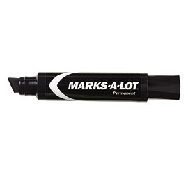 Achieve big results with a very big marker. This Marks-A-Lot® Jumbo Chisel Tip Permanent Marker features an extra-large barrel that houses a generous, long-lasting ink supply. The ink is low-odor, nontoxic and certified. The jumbo 2/3" chisel tip makes it ideal for creating posters, signs and banners where bold strokes and high visibility are key. Permanent ink dries fast and marks virtually any surface, including metal and plastic, and is designed to endure even against rubbing and water. This is one big, bold marker that will make you want to give a big round of applause.