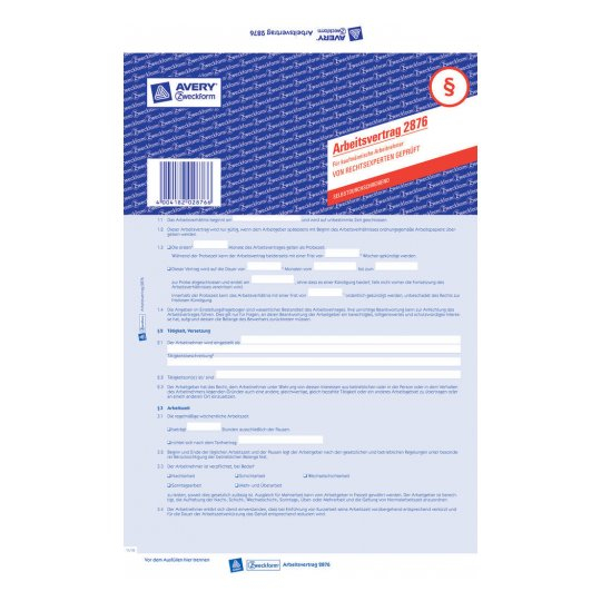 Avery 2876. Colour of product: Blue, White, Material: Paper. Width: 210 mm, Length: 29.7 cm. Quantity per pack: 1 pc(s)