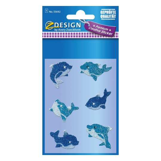 Stickers met gekleurde glitter. Blister met 1 vel. dolfijnen
