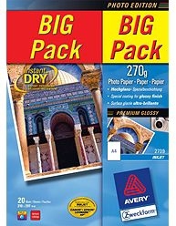 Avery Inkjet Photo Paper 2x20 Sheets. Finish type: Gloss. Paper dimensions: 210 x 297 mm