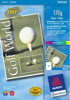 Avery Inkjet Photo-Paper Matt 170 g/m² 25 sheets. Media sheets per package: 25 sheets, Paper dimensions: 297 x 420 mm
