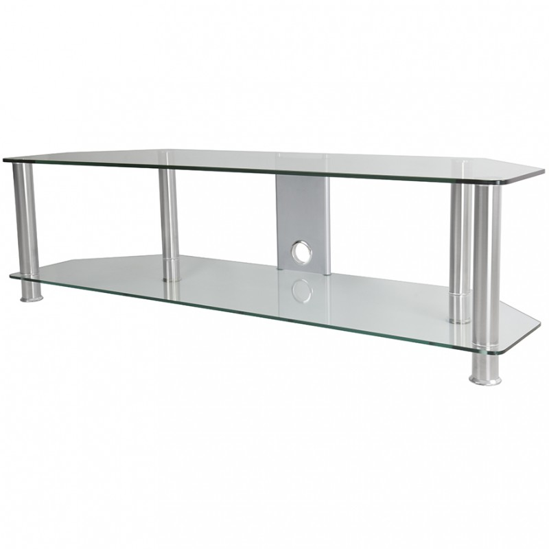 Glass / Tube Corner TV Stand with Cable Management, 60 kg max, 165.1 cm (65 ") , Chrome/Transparent