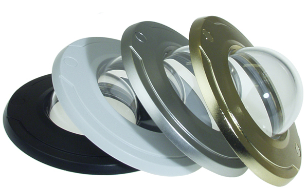 Mix of White-, Black-, Silver- and Gold-colored covers with clear transparent bubble for AXIS M30 Series. 10-pack. Includes 3 black, 3 silver, 3 gold and 1 white cover.