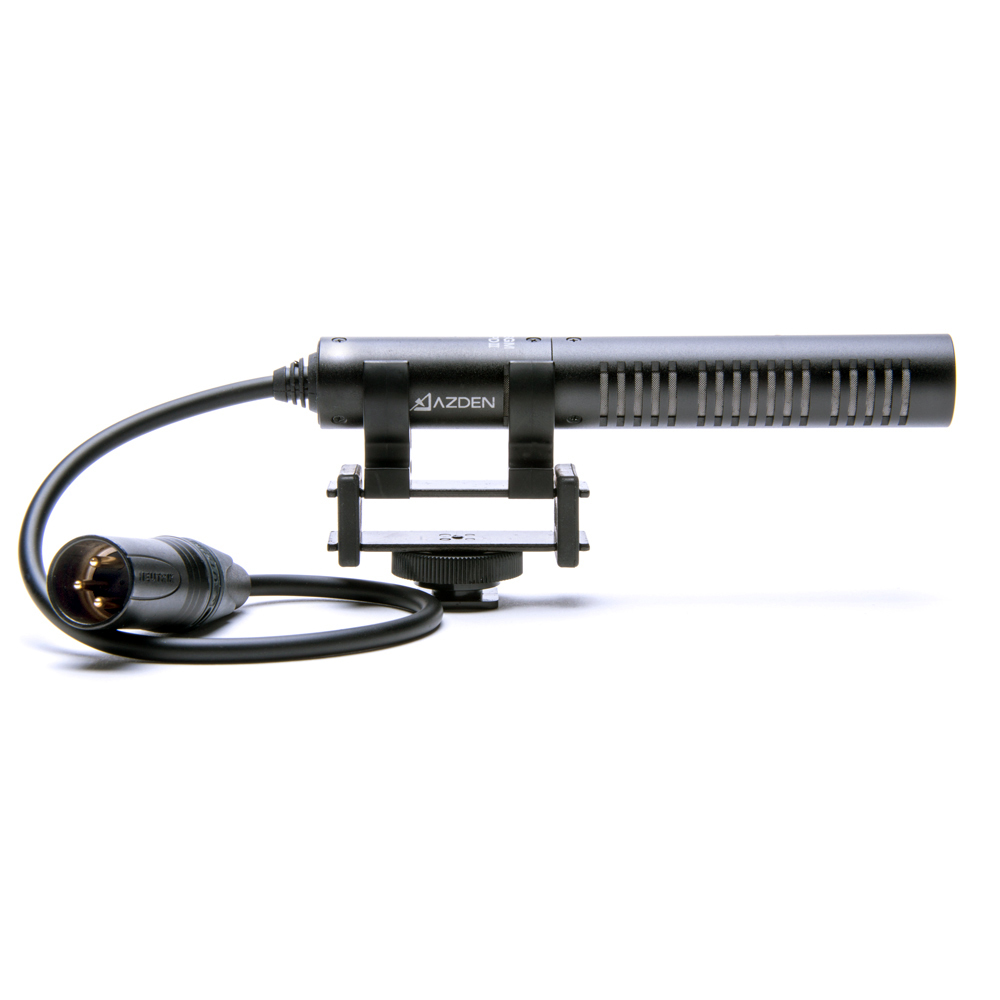 Professional mini (150 mm) shotgun microphone with hard wired 3-pin XLR output cable. Works perfectly with broadcast and prosumer cameras that supply phantom power. Includes shock mount holder with shoe and flocked foam windscreen.