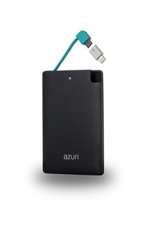 Azuri AZPOWERSLIM2.6A-BLK. Colour of product: Black, Charger compatibility: Universal. Battery technology: Lithium-Ion (Li-Ion), Battery capacity: 2600 mAh, Output voltage: 5 V. Adapters included: Lightning