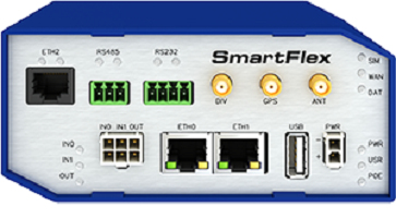 The SmartFlex™ cellular router provides secure Internet connectivity for devices and LANs via the cellular networks. It can be used to provide automatic wireless failover for wired networks, wireless connectivity for devices in remote locations where cable connections are impractical, and wireless connectivity for mobile assets. With upload speeds of up to 50 Mbit/s and download speeds of up to 100 Mbps, the SmartFlex™ provides ample bandwidth, even for applications that require video.