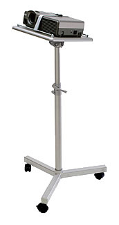 The B-tech BT-890 Projector cart is designed for use with all LCD & DLP projectors up to 55lbs. Can be used as a stand as well as a cart, adjustable height (with wheels) from 30-inch to 49-inch and has an adjustable tilt of 20 degree up or down. Projector platform is made of steel supports with MDF board and is 14-inch x 14-inch, with side rails and safety strap to insure secure mounting. Comes supplied with both braked castor's for mobility and leveling feet to use as a stand. Easy to assemble with all mounting hardware.