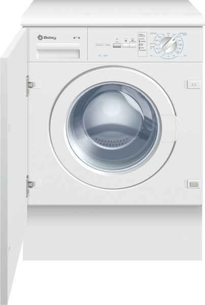 Balay 3TI-60080 A. Case design: Built-in, Loading type: Front-load, Colour of product: White. Drum capacity: 6 kg, Maximum spin speed: 800 RPM, Washing class: A. Energy consumption washing per cycle: 1.02 kWh, Water consumption per cycle: 47 L. Width: 595 mm, Depth: 580 mm, Height: 823 mm. Power requirements: 230 V, 50 Hz, 10 A