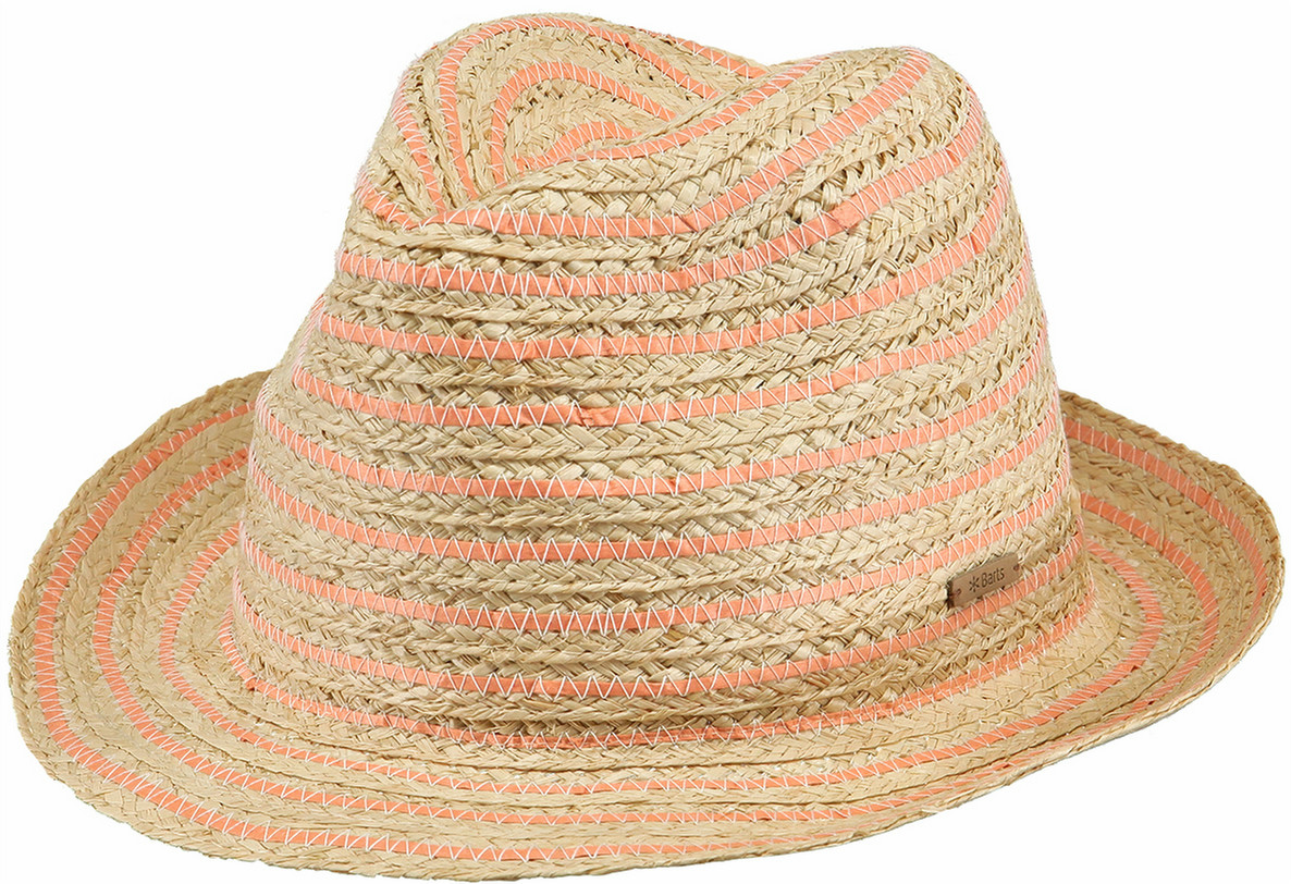 STRIPED STRAW The Dartley is a fedora hat with a striped pattern and adjustable fitting to keep it in place. It’s made of a raffia straw and paper blend. The raffia is derived from the strong and sturdy raffia palm tree.