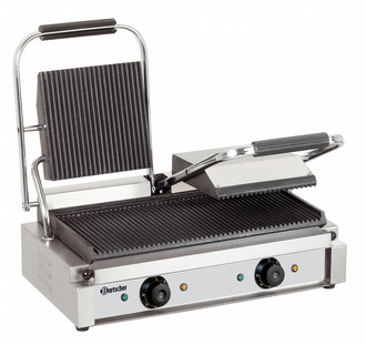 3.6kW/230V, 470x230mm, CNS, 26kg Electric double contact grill, grill plates grooved.