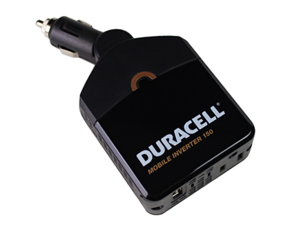 The Duracell® Compact Mobile Inverter 150 powers your laptop, tablet, smartphone and more from your car's 12-volt DC power outlet. One AC outlet and one high powered 2.1 Amp USB port charge two devices simultaneously. The compact design with rotating flex neck allows use inside virtually all vehicle interiors.