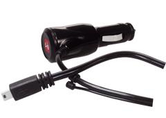 Replacement car charger 12/24V with integrated TMC antenna. The built-in antenna can be ripped off for enhanced TMC reception.