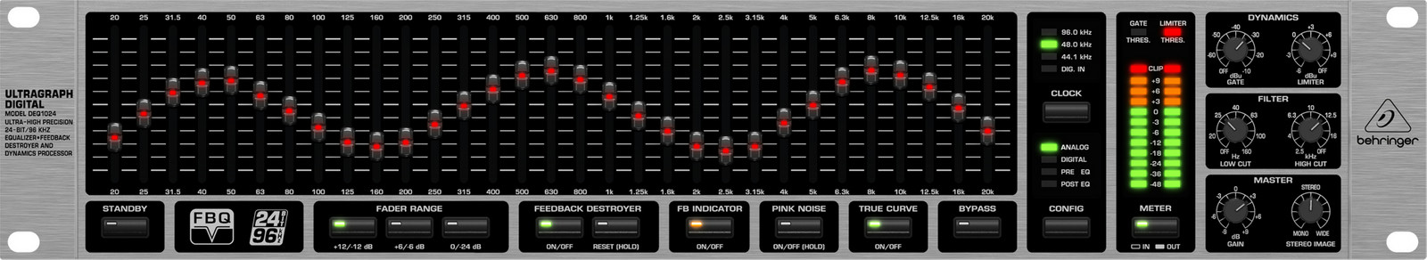 For more than 20 years, BEHRINGER has designed and manufactured some of the most successful FBQ Feedback Elimination processors. Now you can own and enjoy the benefits of this technology, as we have integrated the revolutionary FBQ Feedback Detection System into the ULTRAGRAPH DIGITAL DEQ1024, so your sound system is completely feedback-free, allowing you to focus on your performance.