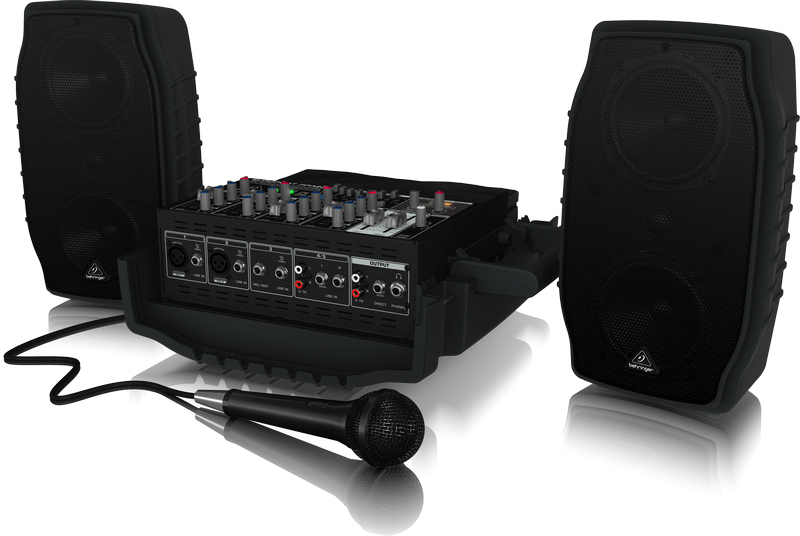 Armed with 200 Watts of massive output power, the PPA200 sets up in just minutes and provides room-filling sound, all in a rugged, carry-on style briefcase that is perfect for everything from parties to press conferences to sporting events. Everything you need is included in a convenient and easy- to-use package: two detachable speakers; a high-quality, "wireless-ready" 5-channel mixer; a BEHRINGER XM1800S microphone with a 20' cable and clip; plus two speaker cables so you are ready to go.