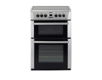 60cm Wide Double Oven Ceramic Electric Cooker, Silver, 4 Zones with Hot Indicators, 28 L/60 L