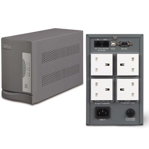The Belkin Universal Series UPS with AVR technology offers the most complete protection from damaging power disturbances to home or office workstations. Our complete power protection solution safeguards your valuable equipment and critical data from blackouts, brownouts, surges, spikes, and lightning. In a power outage or brownout, the Universal UPS automatically switches your computer to battery backup power and gives you the time to save open files and safely power off. When the power goes off, your computer stays on.