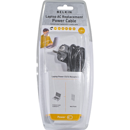 Belkin Laptop AC Replacement Power cable. Gender: Male/female, Colour of product: Black, Cable length: 1.8 m