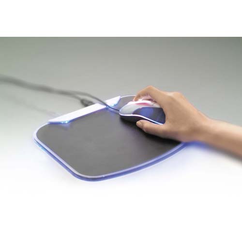 Add a little fun and a lot of functionality to your desktop with the Belkin USB 2.0 Lighted Mouse Pad and 4-Port Hub. The Mouse Pad has a smooth surface that improves the functionality of both ball mice and optical mice. When connected to your computer's USB port, a soft blue light radiates from the mouse pad lighting up your workspace. The 4 Hi-Speed USB 2.0 ports on the mouse pad allow you to connect high-speed devices such as Media Readers, Flash Drives and external hard drives. The Mouse Pad is backwards compatible with USB 1.1 and can also be connected to Full-Speed and Low-Speed devices, such as your mouse, keyboard or USB printer. And installation is a breeze, simply Plug-and- Play. A pleasure to work with.and to look at!