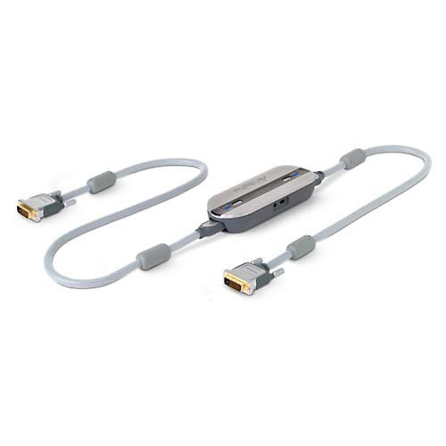 Razorvision DVI Dual-Link Video Cable, 2.4m PureAV RazorVision video cables by Belkin improve the contrast of your picture and bring out more detail using a video enhancement chip by DigiVision, Inc. It works on all types of displays and with all TV video sources by way of a cable. PureAV offers both digital and standard definition cables using the RazorVision technology. There are three types of digital cables which handle all HDTV formats as well as standard definition TV - HDMI Audio Video Cables, HDMI-to-DVI Video Cables, and DVI Video. RazorVision uses DigiVision's unique patent pending video processing technology that improves large areas of the display. Competing technologies only operate on a few pixels in very small areas of the picture. Picture a bowl of fruit with a yellow banana surrounded by red apples. The RazorVision cable will make the banana brighter and the apples a little darker. Other contrast enhancement technologies on the market would just make the edge of the banana brighter, like a halo. The RazorVision cable makes the whole banana brighter. The effect is most evident in outdoor nature scenes with sky, sand, grass, trees, wild animals, etc. Those scenes have a lot of detail that can be enhanced and have very bright and very dark components. It doesn't do as much processing on dark scenes because they are subtler by nature These PureAV Silver SeriesTM interconnects incorporate RazorVision digital enhancement technology to improve video content regardless of the display type. This represents an advance over existing high-quality digital video cables, which are designed to maintain the original content from your source and deliver it to your display without loss or interference. PureAV RazorVision Cables provide you with the following picture improvements: . Increased contrast with more visible details . Brighter whites and blacker blacks . Restored details in glare and shadows . No edge-outline artifacts . More image depth Previously, traditional cables could only duplicate the image source, at best. The PureAV RazorVision cable actually improves the original image source. Uses a substantially larger screen sampling, over current displays, for image adjustments. This process improves shading, and provides more depth to images. Similar to digital photo enhancement, but in real-time. RazorVision is an active cable, improving the signal, so all displays will be improved due to better signal.