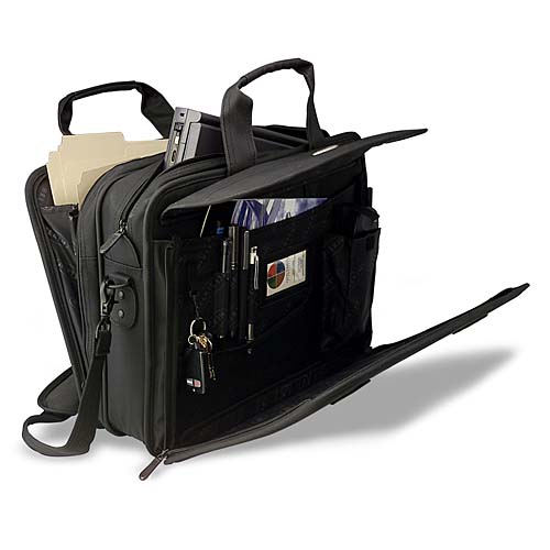 A padded, adjustable computer compartment combines with a file divider and slots for your phone, pens, and other accessories to create a fully equipped, portable workstation.