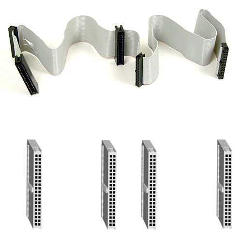 The 32-inch Universal 3.5"/5.25" Floppy Ribbon Cables attach both a 3.5" and 5.25" internal floppy drives to a floppy controller card.