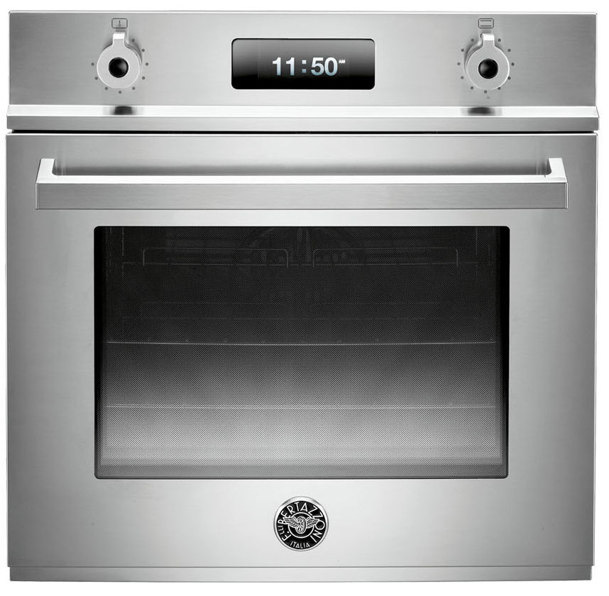 The Bertazzoni Professional Series 60 cm electric oven XT has 10 cooking functions including non-convection baking, convection, fan assisted grilling, and low-temperature proofing and warming modes.