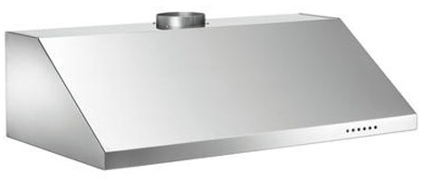 This single-motor 90 cm stainless-steel ventilation hood can either be installed with no duct cover under cabinets or with narrow duct cover. Hood chimney height is adjustable through a wide range.