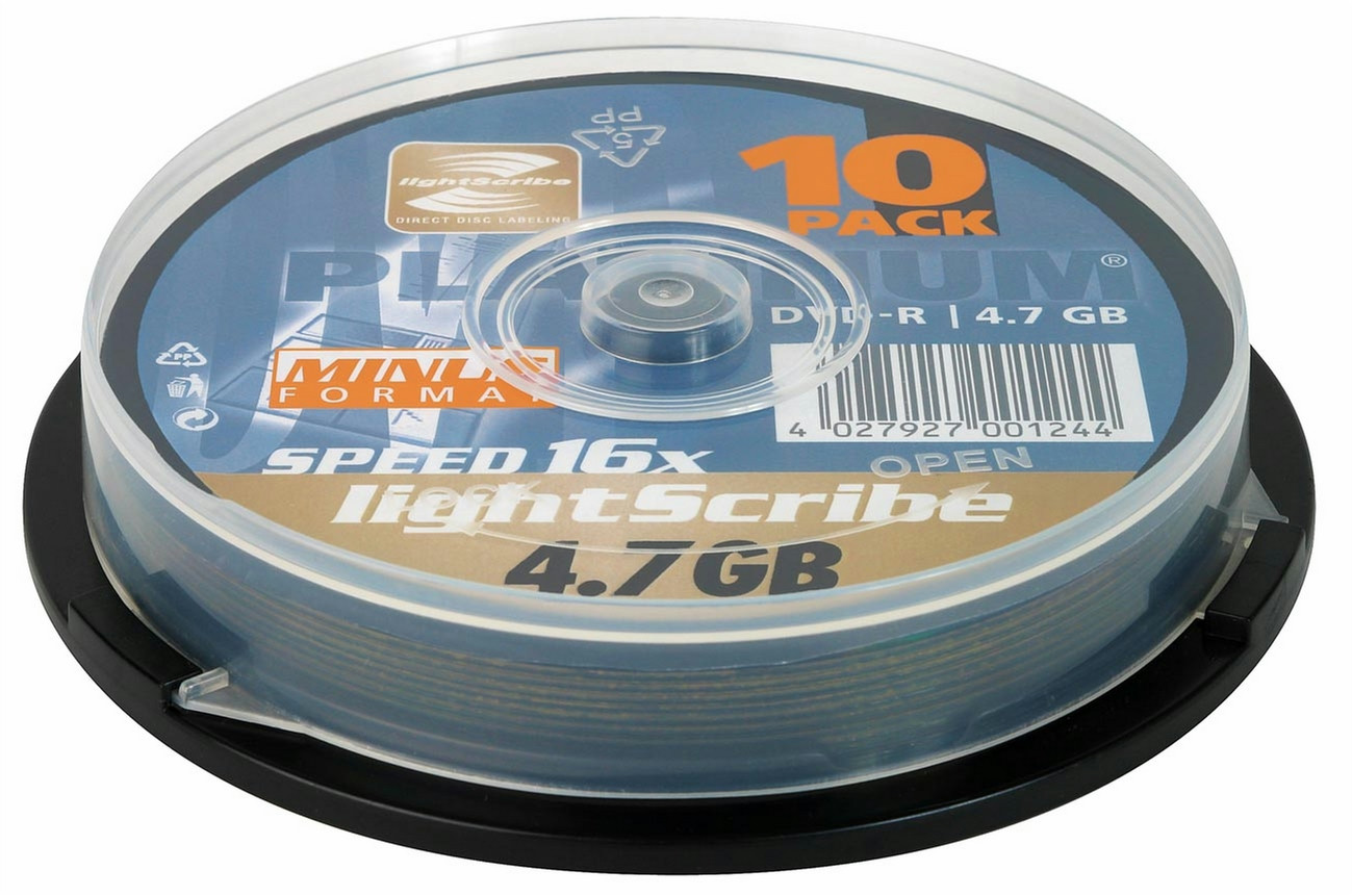 Bestmedia DVD-R 16x 4.7GB 10pcs lightScribe. Native capacity: 4.7 GB, Type: DVD-R, Quantity per pack: 10 pc(s). Package width: 295 mm, Package depth: 440 mm, Package height: 185 mm