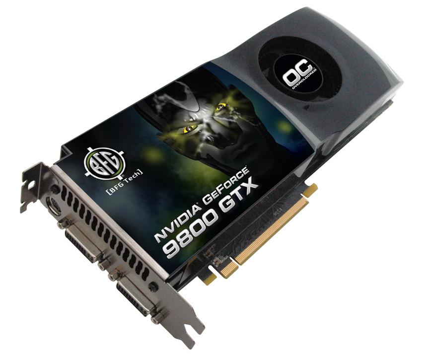The BFG NVIDIA® GeForce® 9800 GTX OC™ 512MB graphics card raises the performance bar by enabling full-throttle lifelike game play at intense resolutions while providing optimal power management with HybridPower™ technology. The PureVideo® HD engine delivers unmatched video and movie quality with spectacular picture clarity featuring scene-optimized color and contrast enhancement. And when coupled with nForce® SLI®-ready motherboards, provides amplified performance up to 2x in a dual SLI configuration and up to 2.8x in 3-way SLI mode. Packing more performance at an exceptional value, the BFG NVIDIA® GeForce® 9800 GTX OC™ 512MB graphics card offers extreme HD gaming and a first-class entertainment experience.