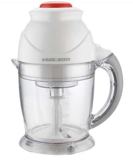 Black & Decker FX250. Bowl capacity: 1 L. Colour of product: Transparent, White, Bowl material: Plastic, Blade material: Stainless steel. Power: 400 W, AC input voltage: 230 V. Weight: 1.4 kg