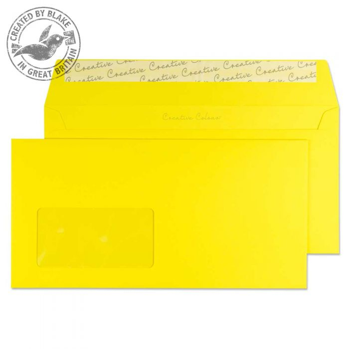 Banana Yellow, DL+ 114x229mm, Window 45 x 90mm, 15up, 20lhs, Gummed, Pack 500, 120 GSM, Wallet, Matching Paper Available, FSC Certified Product