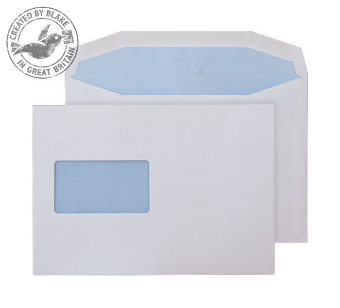 White, C5 162x229mm, Window 50 x 90mm, 60up, 20lhs, Peel and Seal, Pack 500, 90 GSM, Mailing Wallet, Blue Hatch Security Opaque