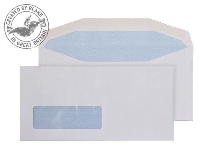 White, DL+ 114x235mm, Window 35 x 105mm, 18up, 20lhs, Peel and Seal, Pack 1000, 90 GSM, Mailing Wallet, Blue Hatch Security Opaque