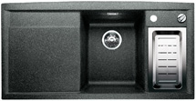 safety glass cutting board, multifunctional colander in stainless steel with high-quality plastic handles, waste fitting with space-saving pipe, 3 1/2'' basket strainers, pop-up waste for the main bowl